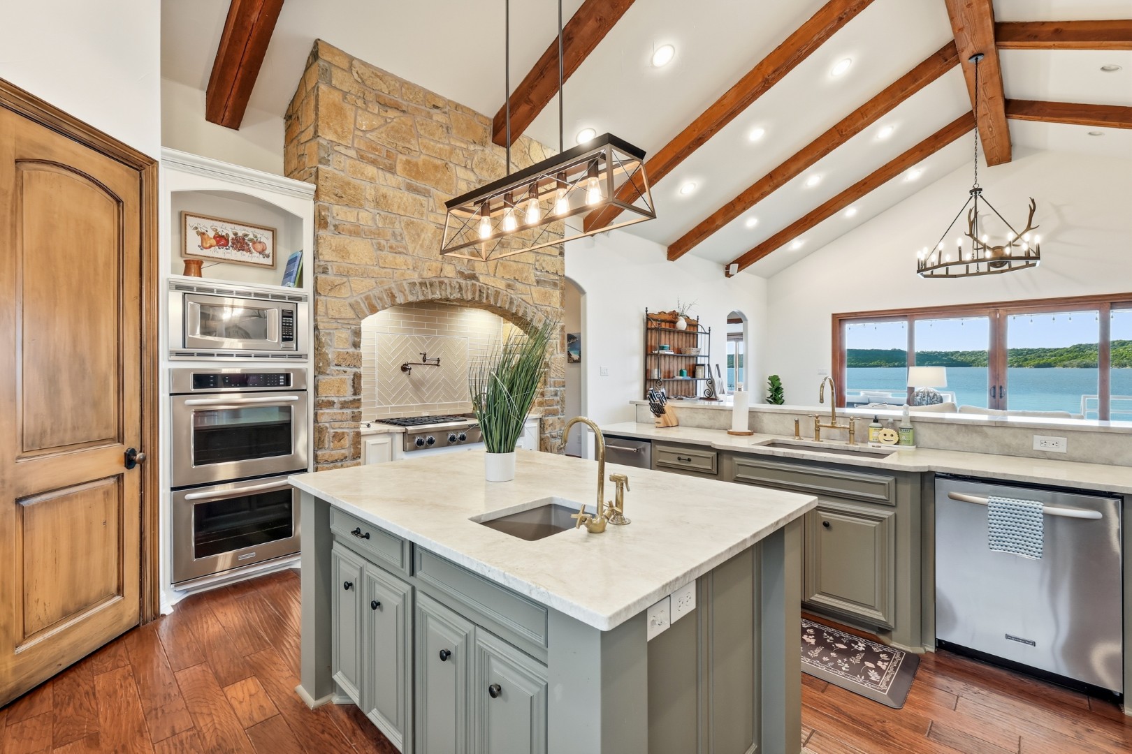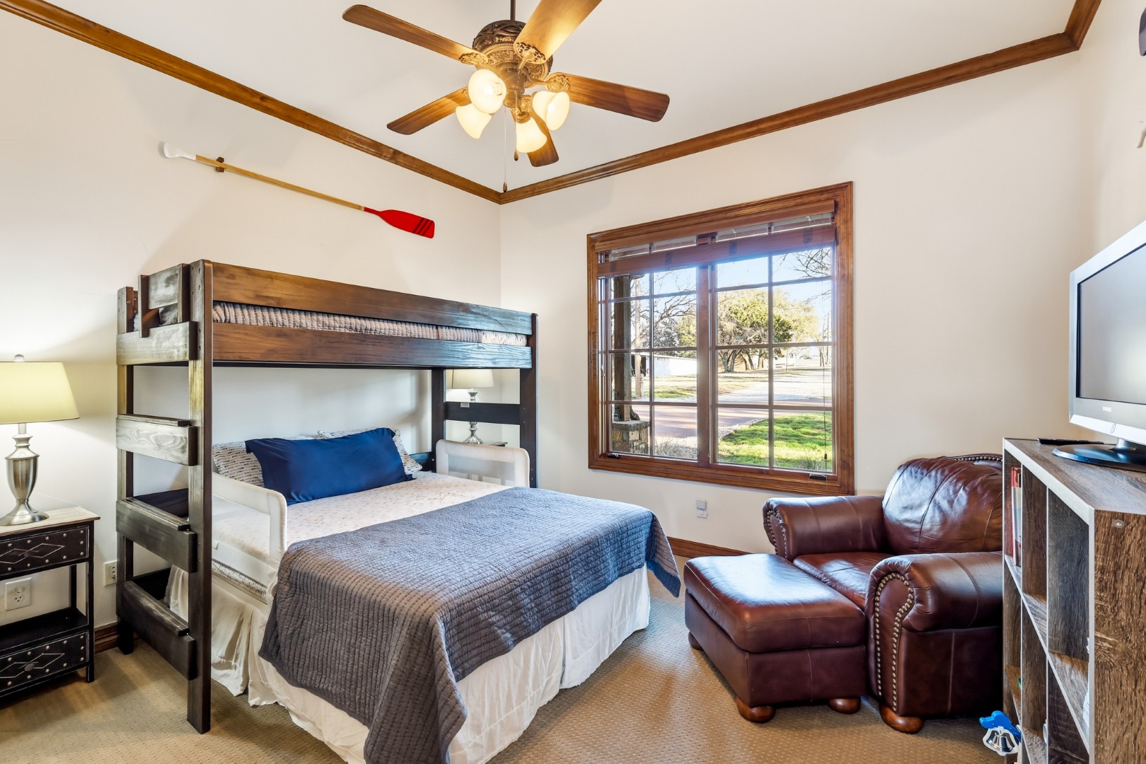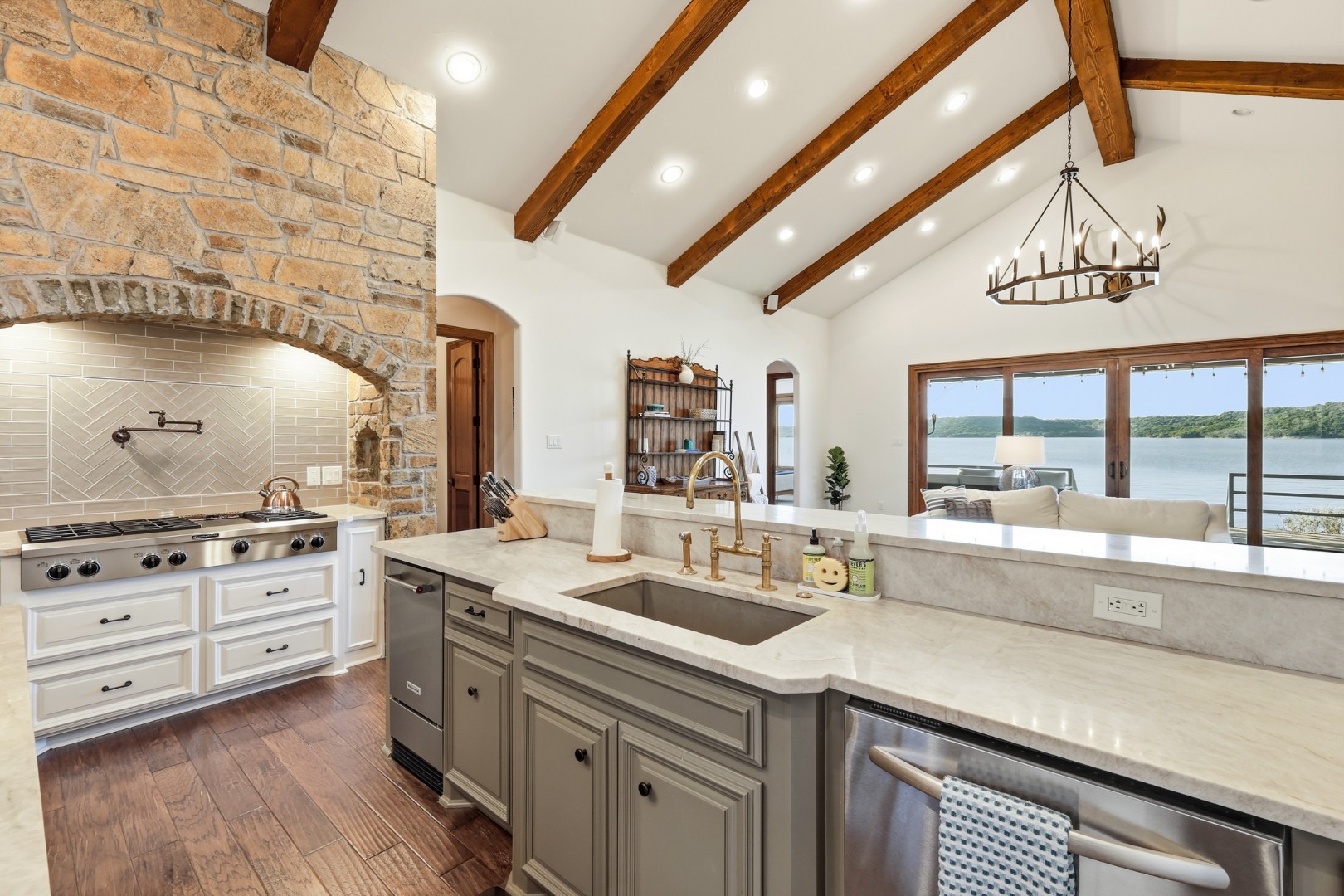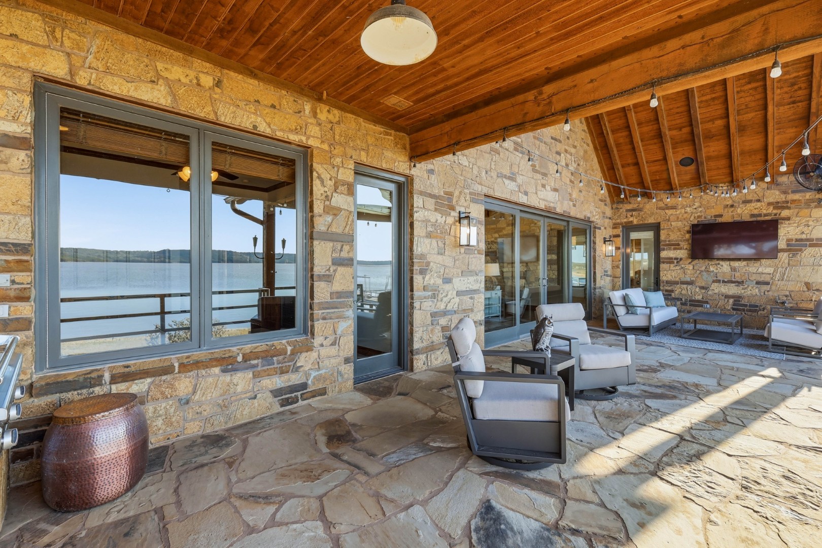 Wake up to peaceful lake views in this stunning lakeside retreat designed for relaxation and entertainment. Perfectly positioned on the water, this home features direct lake access and a private dock, making it easy to spend your days boating, fishing, or simply enjoying the serenity of the shoreline. Step outside to the oversized back patio, an ideal space for hosting gatherings, outdoor dining, or watching spectacular sunsets over the water. Whether you’re sipping your morning coffee or winding down in the evening, the outdoor living space offers a front-row seat to lake life. The main house can sleep up to 11 guests. The Game Garage has a pool table, card table, dart board and TV with sound bar. A Guest Suite with Mini Fridge, Microwave, Coffee maker, Washer/Dryer and Queen bed upstairs (is available with full sleeping capacity of the home can be rented for an extra charge – contact to rent) ***Only 8-10 minutes from Rocker B Ranch***