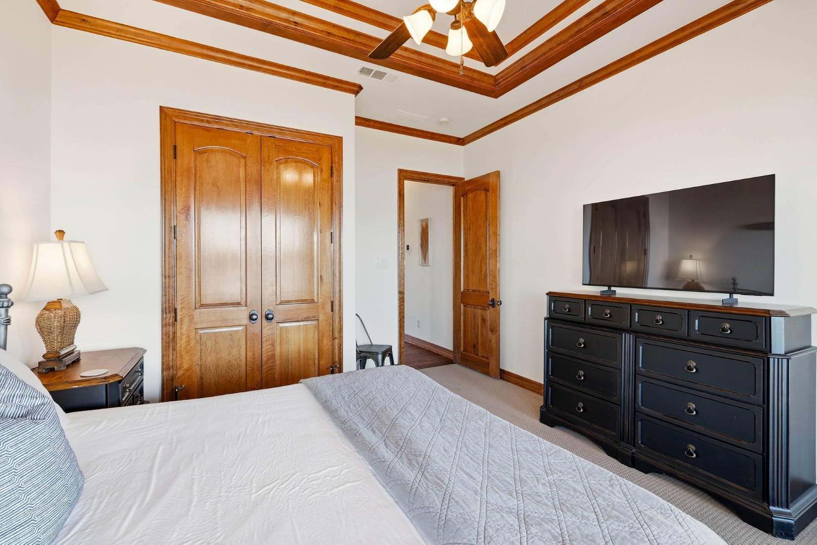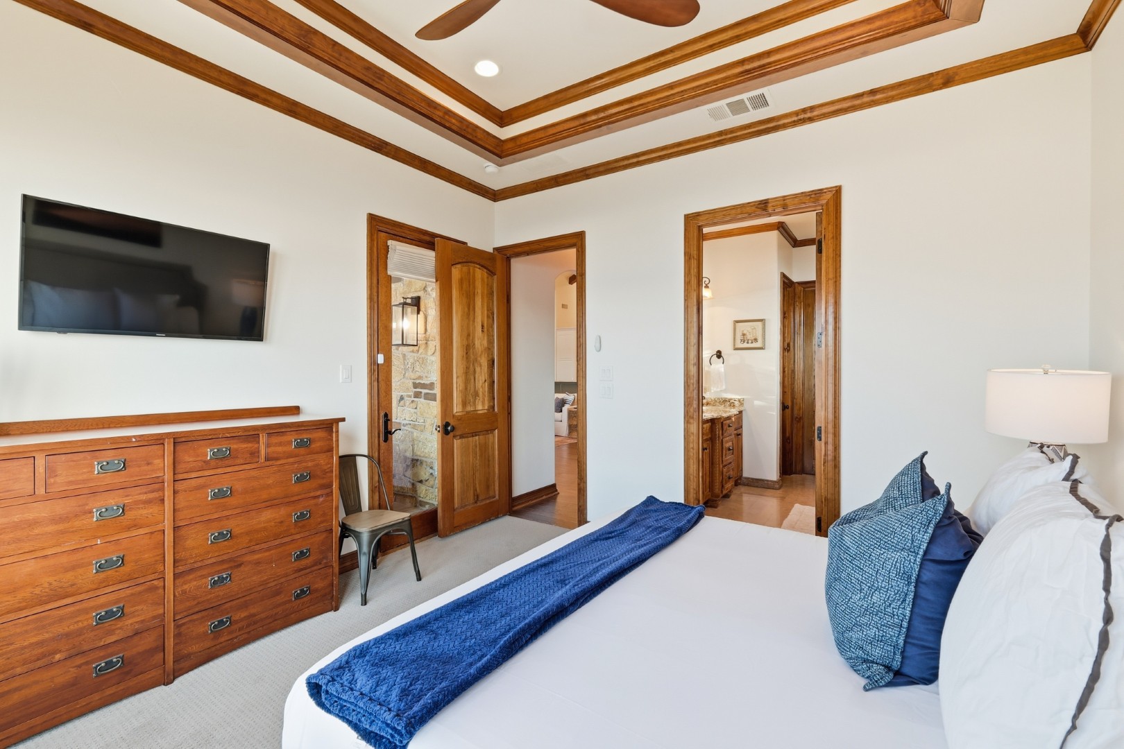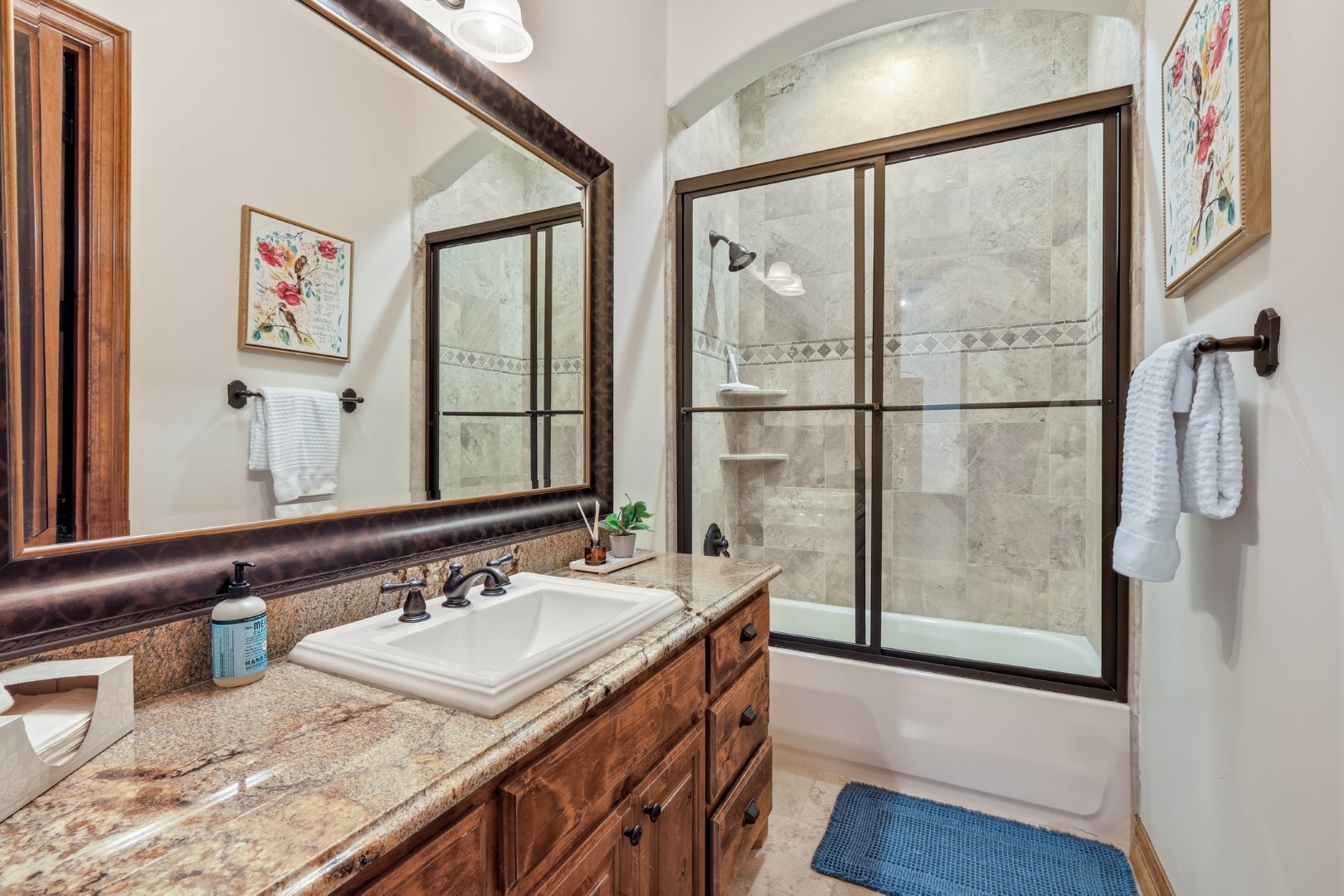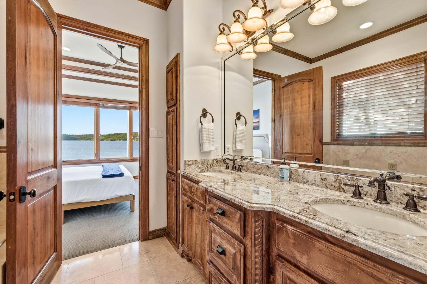 Wake up to peaceful lake views in this stunning lakeside retreat designed for relaxation and entertainment. Perfectly positioned on the water, this home features direct lake access and a private dock, making it easy to spend your days boating, fishing, or simply enjoying the serenity of the shoreline. Step outside to the oversized back patio, an ideal space for hosting gatherings, outdoor dining, or watching spectacular sunsets over the water. Whether you’re sipping your morning coffee or winding down in the evening, the outdoor living space offers a front-row seat to lake life. The main house can sleep up to 11 guests. The Game Garage has a pool table, card table, dart board and TV with sound bar. A Guest Suite with Mini Fridge, Microwave, Coffee maker, Washer/Dryer and Queen bed upstairs (is available with full sleeping capacity of the home can be rented for an extra charge – contact to rent) ***Only 8-10 minutes from Rocker B Ranch***