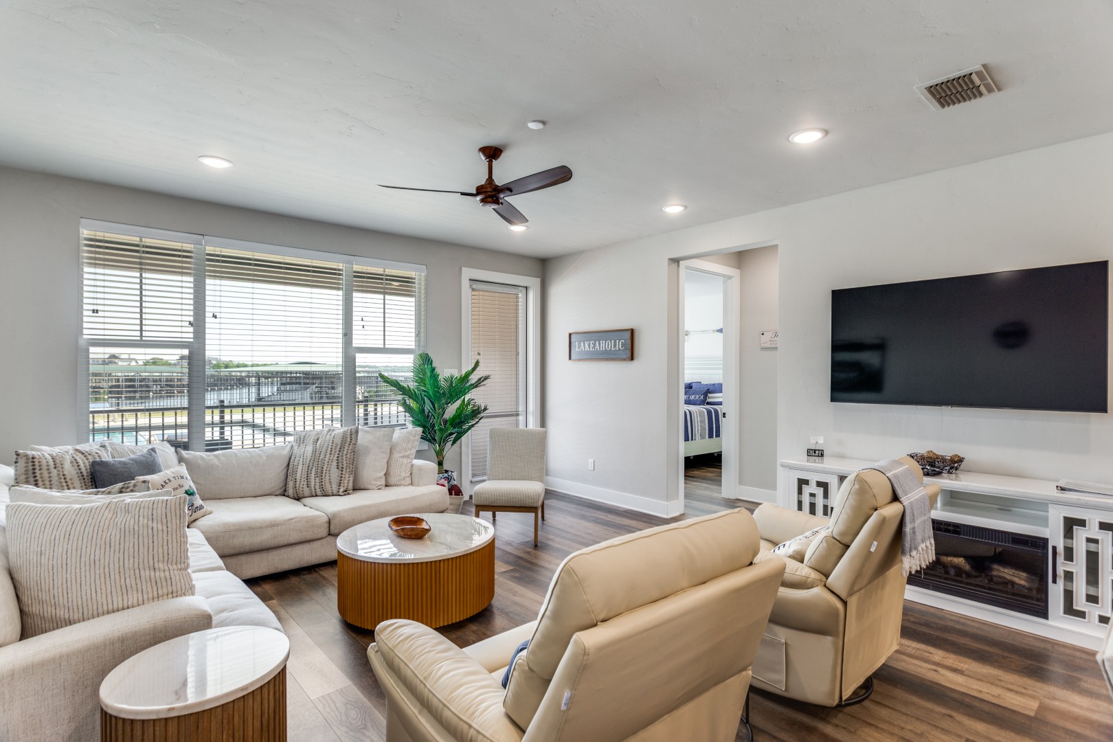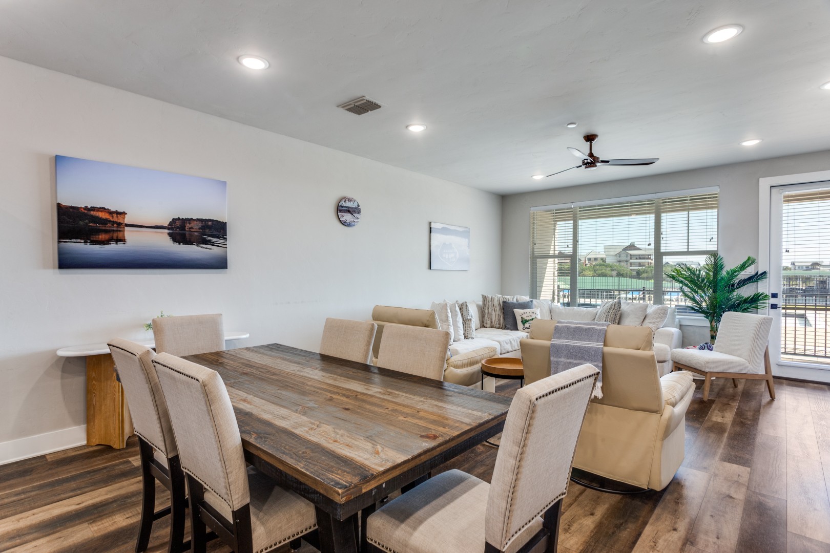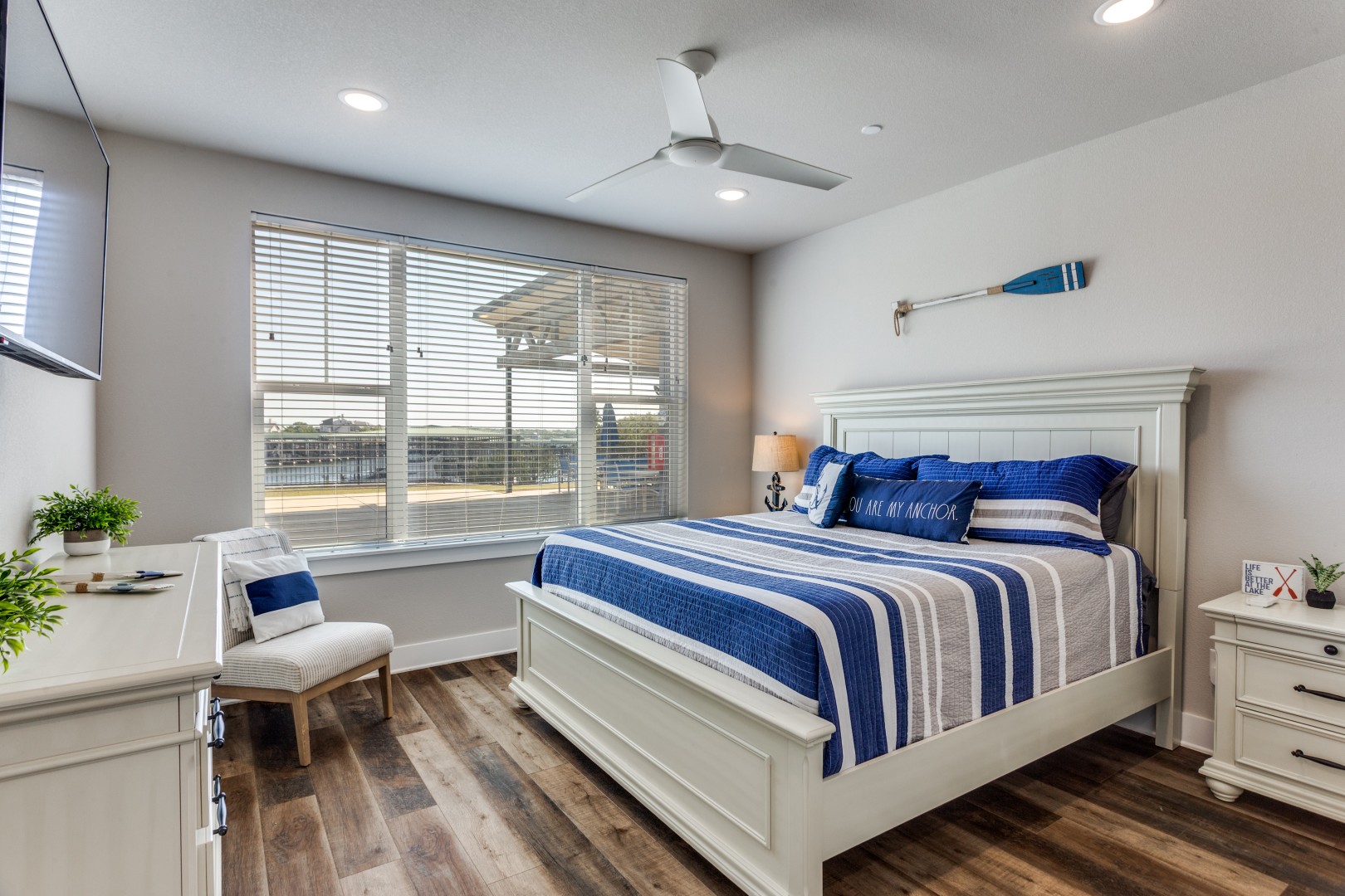 This Condo is centrally located near restaurants and shopping and is a short boat ride to the iconic Hells Gate. Walking distance to Hemingway’s Craft House, one of the top restaurants overlooking the lake. The Harborview Condos offer a luxury experience on the lake by providing a Fitness center, Pool, Hot Tub, Outdoor grills with large patio TV, while offering access to one of the most popular lakes in Texas. Great fishing right outside your front door. The trailhead is a 1/2 mile walk if you want to hike or mountain bike while enjoying amazing lake views.
